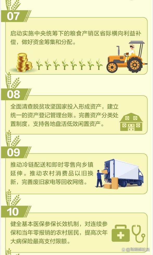 整体来看,核心内容主要是:锚定推进乡村全面振兴,建设农业强国目标,千方百计推动农业增效益,农村增活力,农民增收入。